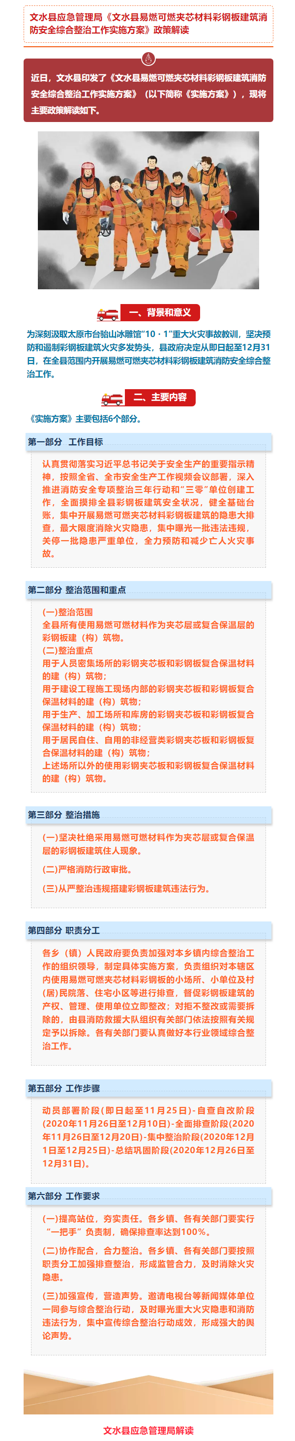 【图解】【本县政策解读】文水县应急管理局《文水县易燃可燃夹芯材料彩钢板建筑消防安全综合整治工作实施方案》政策解读