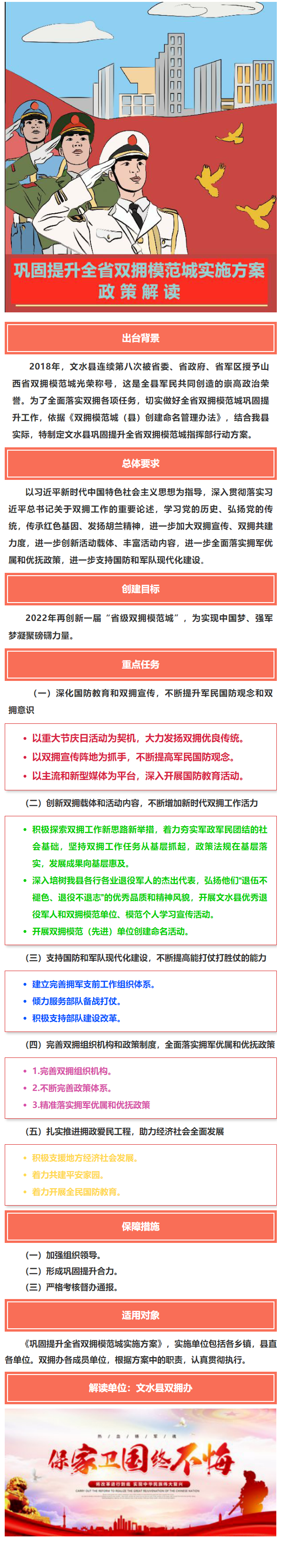 【图解】文水县双拥办关于印发《文水县巩固提升全省双拥模范城实施方案》的通知的政策解读