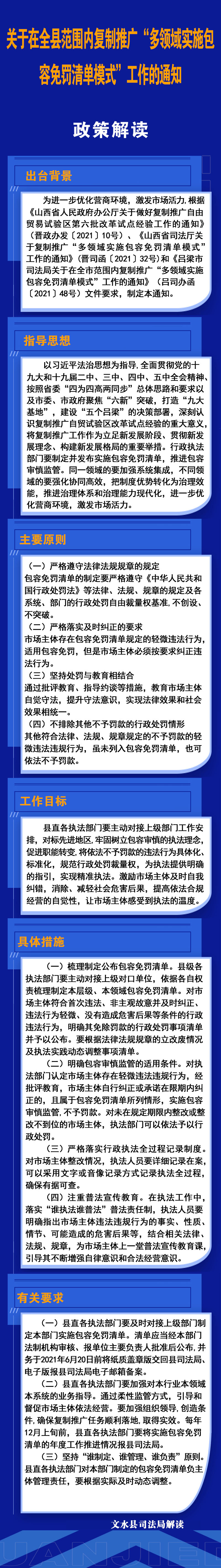 【图解】文水县司法局关于在全县范围内复制推广“多领域实施包容免罚清单模式”工作的通知的政策解读