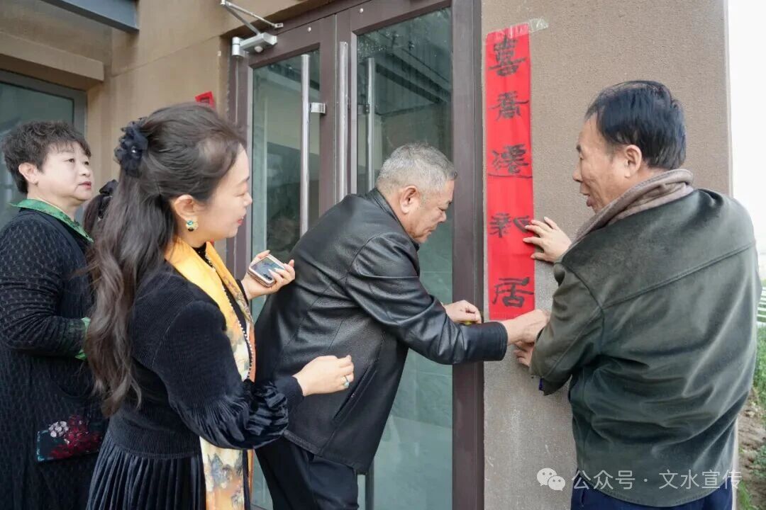 活动现场,书画爱好者们齐聚一堂、挥毫泼墨。创作内容既涵盖“寿比南山”“国泰民安”等重阳经典题材,更针对村民乔迁之喜,定制“新居焕彩迎福至”“阖家欢乐庆乔迁”等主题对联。完成创作后,工作人员与书画家一同走进社区新居住区,将带着墨香的对联与画作张贴在村民新家门前,不少村民看着崭新对联映新居,笑着拍照留念,满是欢喜。