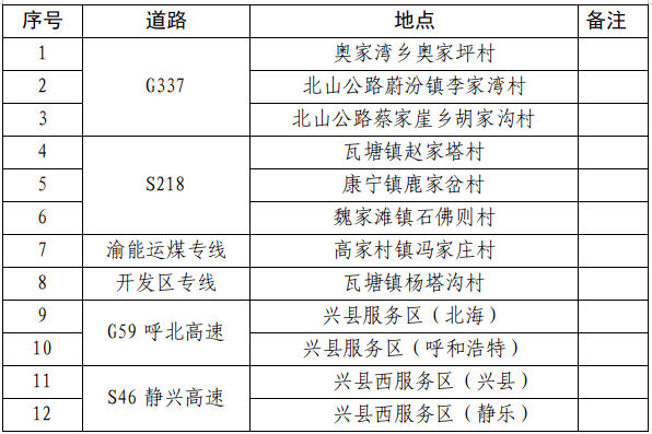 兴县综合能源站布局12个,其中,高速上4个,国道上3个(G337),省道上3个(S218),专线上2个(渝能运煤专线1个,开发区专线1个)。