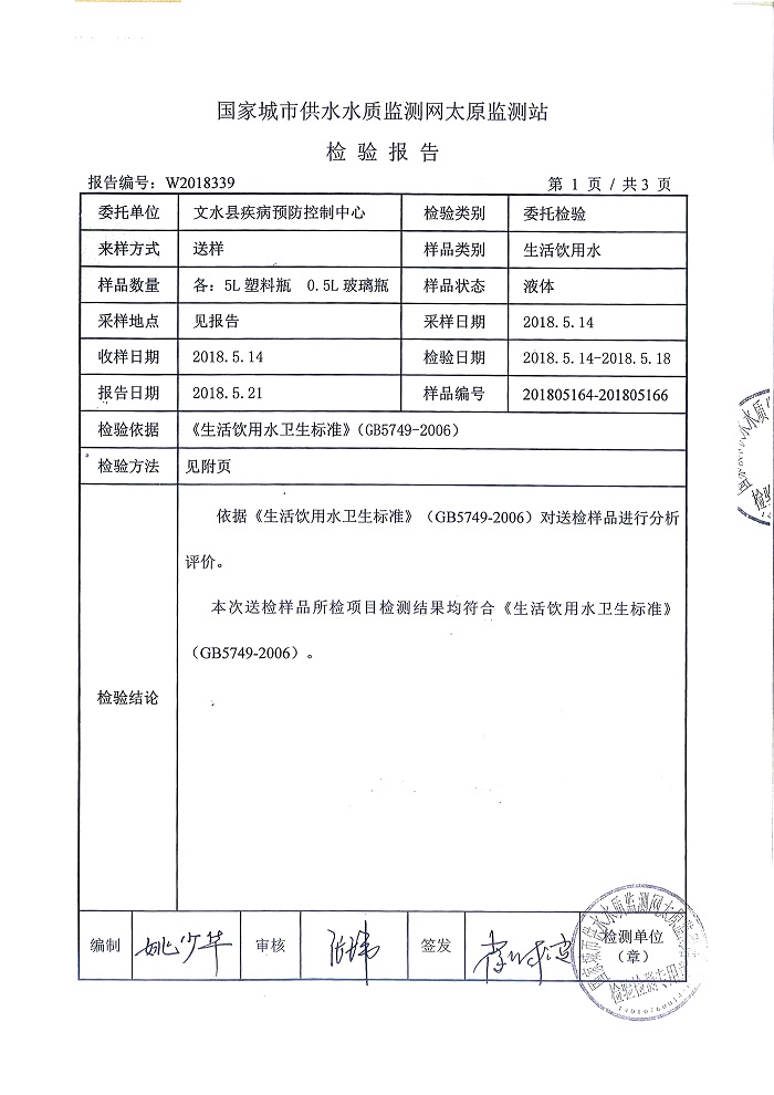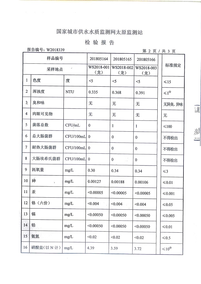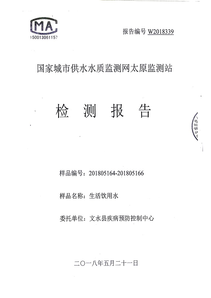 文水县2018年上半年城区用户水龙头水水质监测信息公示