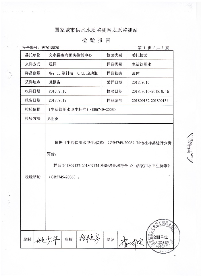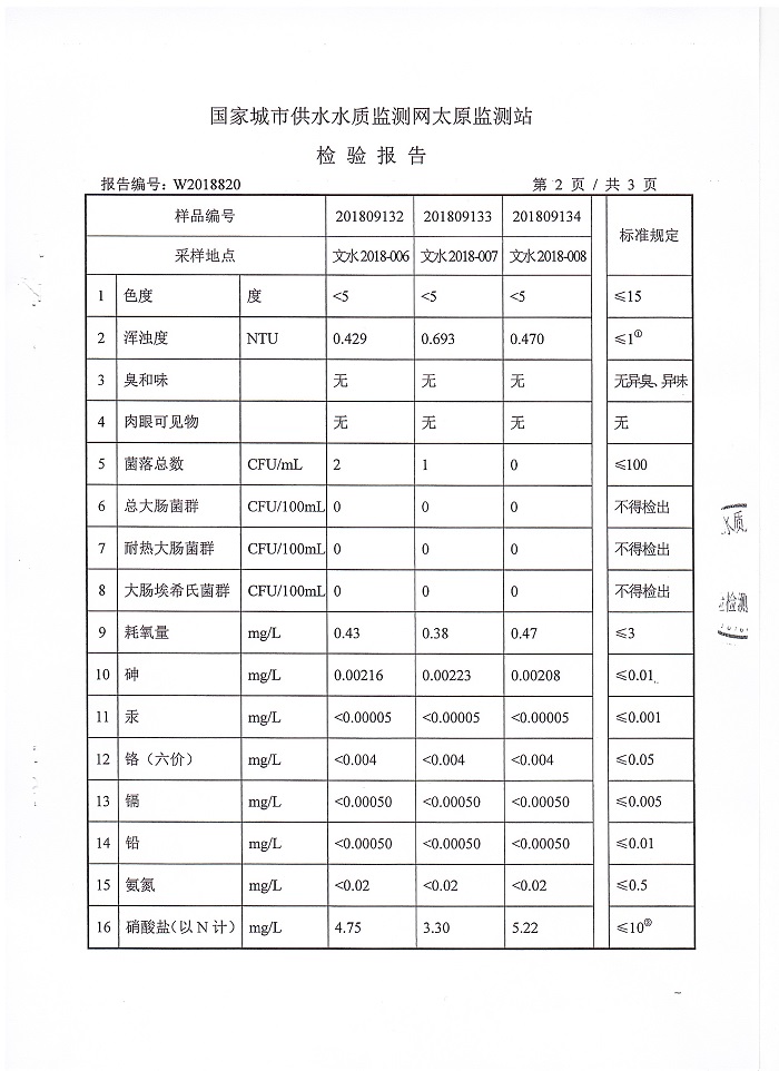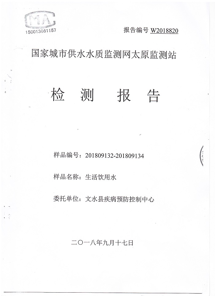 文水县2018年下半年城区用户水龙头水水质监测信息公示