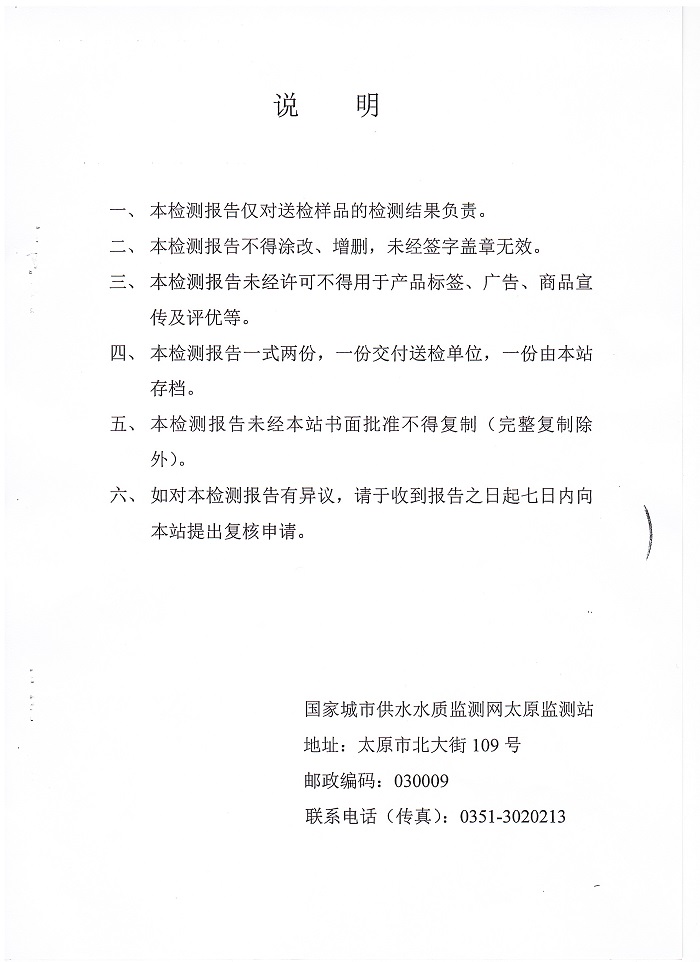 检测报告附后: